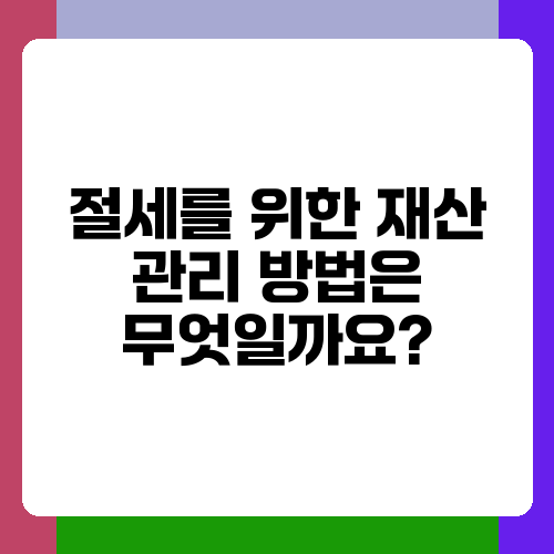 절세를 위한 재산 관리 방법은 무엇일까요?